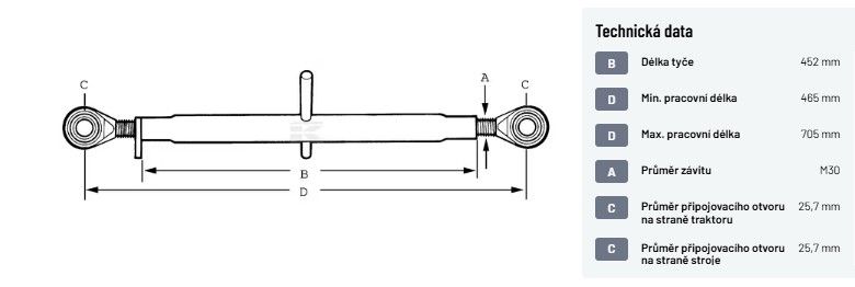 Třetí bod oko-oko kat. 2/2, délka 452 mm, M30, O připojení 25,7 mm