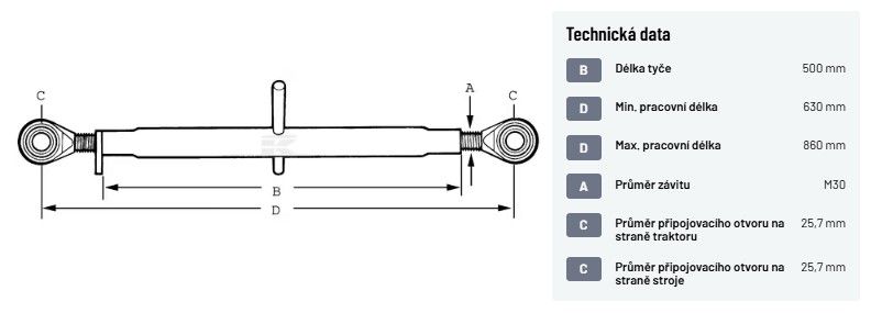Třetí bod oko-oko kat. 2/2, délka 500 mm, M30, O připojení 25,7 mm