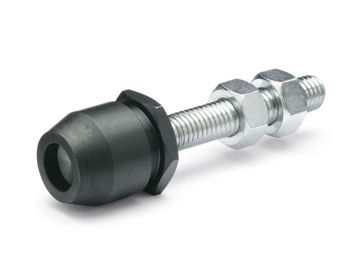 Přesné nastavení přítlaku: Šroub o rozměru M8 x 70 mm je vybaven dvěma pojistnými maticemi, které umožňují precizní fixaci v rameni upínače. Pružina zajišťuje, že upínací síla zůstává v definovaném rozmezí, čímž chrání citlivé povrchy před nadměrným otlačením.