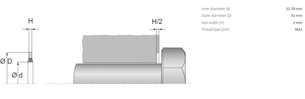 US 22.7 x 31 x 2 mm je speciální druh těsnění, které se nejčastěji používá k statickému utěsnění šroubení a přírubových spojů. Rozměrově odpovídá použití pro šrouby velikosti M22.