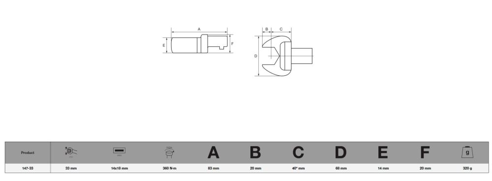 Vidlicový metrický klíč se čtyřhrannou přípojkou BAHCO 147-33