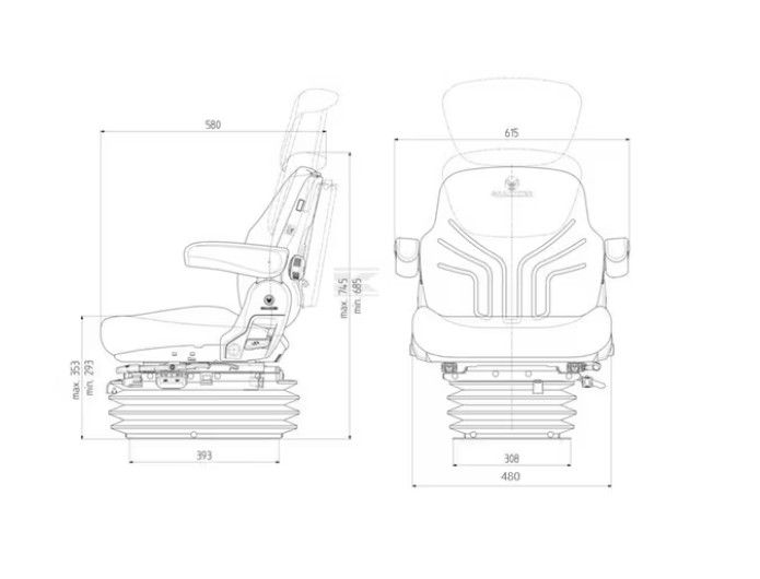 Vzduchem odpružené sedadlo Grammer MSG95G/721, šíře 480 mm s loketními opěrkami (130 kg)