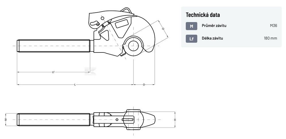 Záchytný hák vč. lanka a kul. pouzdra, Kat. 3/3, M36x3