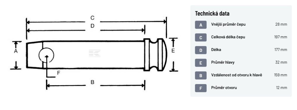 Zajišťovací čep 28 x 197/ 159 mm, Kat. 2 - pozink. (otvor 12 mm)