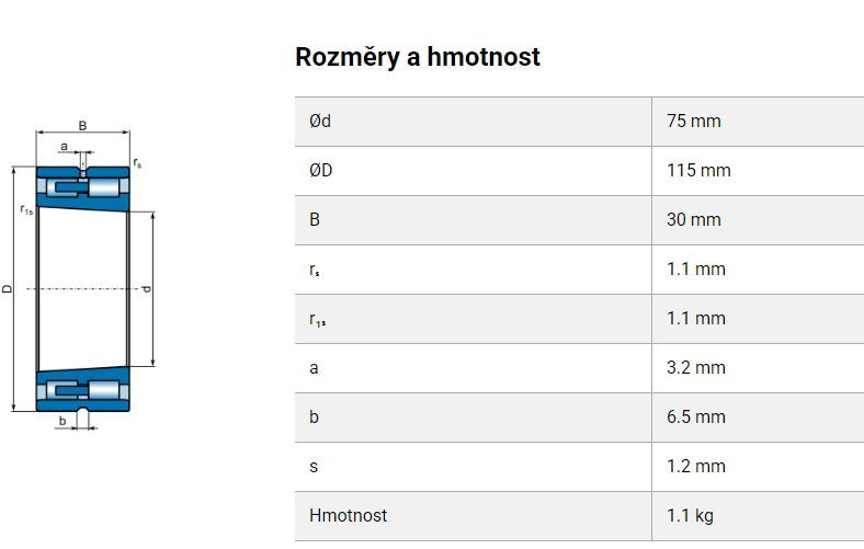 Ložisko má rozměry 75 x 115 x 30 mm, kuželovou díru K s kuželovitostí 1:12.